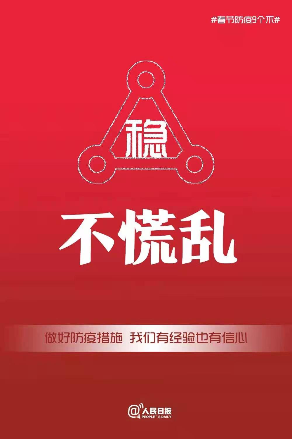 疫情當前,防控形勢依然嚴峻,做到自我防護,才是我們做好疫情防控工作的關(guān)鍵,生活,工作不松懈、不隱瞞、不聚集、不傳謠、不輕信、不硬闖、不沖動、不慌亂、不僥幸!